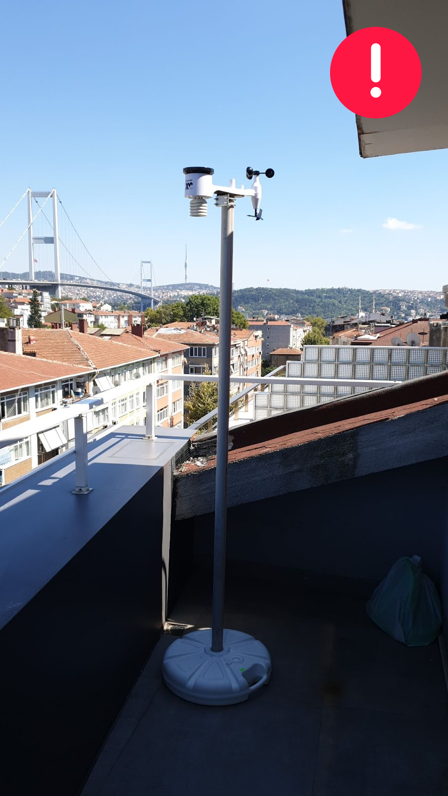 A balcony is not a place for a weather station. The station should be moved to the roof of this apartment following the general guidelines.