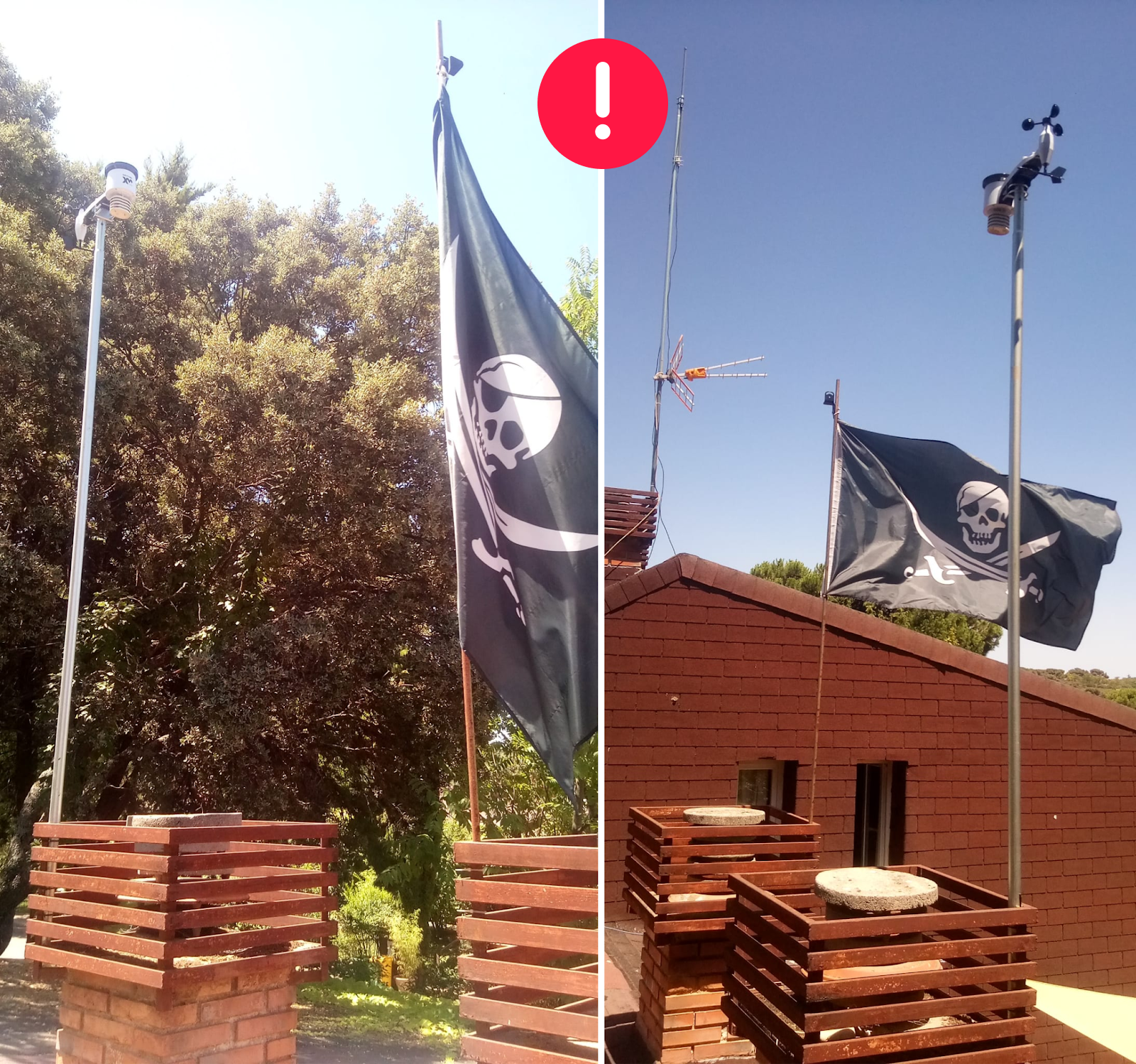 The station has been deployed at the highest point of this apartment, which is located at an area, where other obstacles are not much higher. In addition, the mast is ~7m makes the deployment quite ideal. Sparse thin coconut trees shouldn’t be able to affect measurements. In a case like that the user should tight firmly the wires that stabilise the mast. Otherwise, the mast may significantly oscillate, producing faulty wind and especially rain measurements.